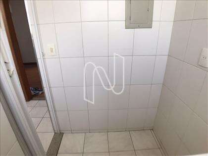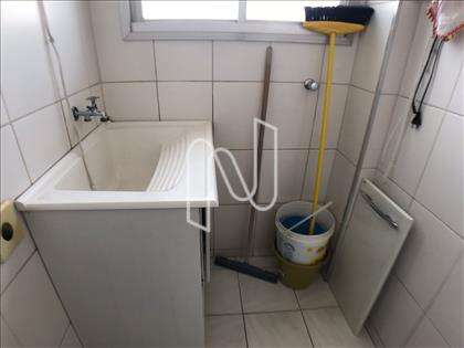 - Área de serviço com tanque, armário sob o tanque, com piso em cerâmica e paredes azulejadas até o teto;