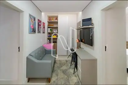 A ampla sala, perfeitamente integrada para dois ambientes, é o convite ideal para momentos de convivência e aconchego. São três quartos com armários planejados, incluindo uma suíte, que garante privacidade e bem-estar ao dia a dia. O imóvel ainda conta com um escritório completo para home office, planejado com bancada e armários, proporcionando funcionalidade e estilo.