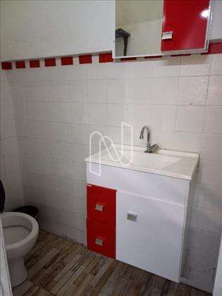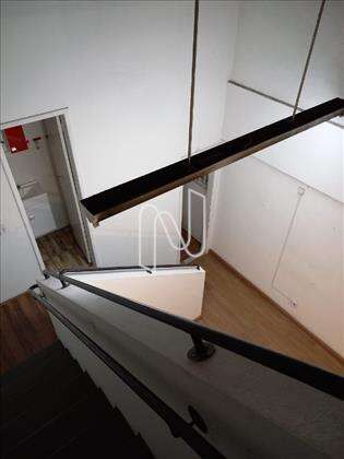 Loja com piso de 73m² e mezanino de 30m², podendo ser ampliado. Possui 2 banheiros e vitrines na porta de entrada.